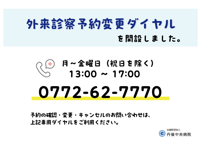 外来診察予約変更ダイヤル  0772-62-7770