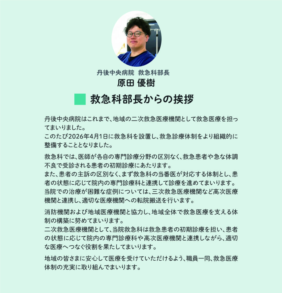 2026年4月1日に救急科を設立しました。