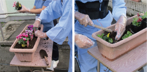 リハガーデン ~苗植え、間引きをしました~ 医療関係者の方へ 部門紹介 リハビリテーション部 リハ部お知らせ リハガーデン ~苗植え、間引きをしました~ 2025年10月28日に患者さんと一緒に、冬にも花を楽しめるようシクラメンなどを植えました。また、10月10日に種まきをした大根の間引きも一緒に行いました。 【苗植え】 【大根の間引き】