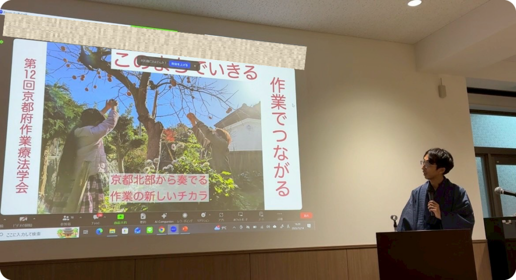 2025年12月14日に『第11回京都府作業療法士会』が開催されました。そこで、次年度会長に就任する当院作業療法士の坂根勇輝が、挨拶を行いました。